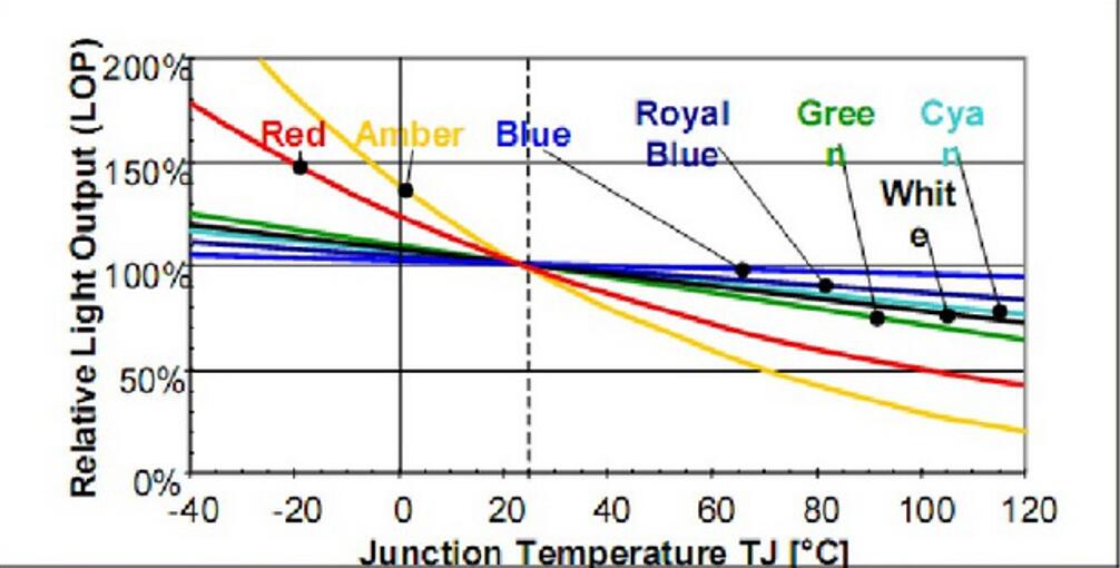 理論上LED總的光電轉(zhuǎn)換效率約是54%,由于材料、工藝,的缺失實(shí)際的轉(zhuǎn)換效率在30%左右。剩余能量主要以非輻射復(fù)合發(fā)生的點(diǎn)陣振動(dòng)的形式轉(zhuǎn)化熱能,這就是LED熱源因素。鐵支架導(dǎo)熱不良,環(huán)氧樹酯黃化,芯片與支架接觸不夠緊密,芯片衰減大,如果是白光,還有熒光粉衰減的問題都會(huì)造成光衰。